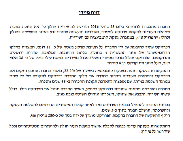 אמות השקעות זכתה במכרז עריית חולון
