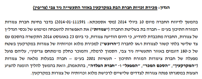 חברה בת של גאון אחזקות מוכרת את נכסיה בצריפין