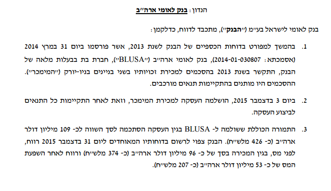 חברת בת של בנק לאומי השלימה מכירת זכויותיה בשני בניינים בניו-יורק