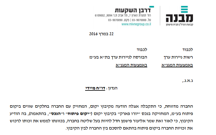 קיבוץ יקום הודיע ל דרבן השקעות בע"מ כי בכוונתו לממש את האופציה לרכישת "יורו פארק" בתחום הקיבוץ.