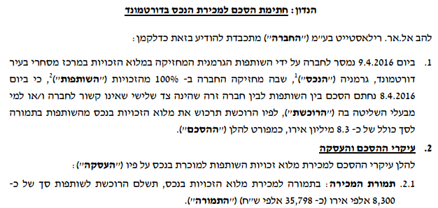 להב אל. אר. רילאסטייט חתמה על הסכם למכירת נכס מסחרי בדורטמונד