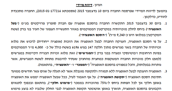 לודז'יה רוטקס התקשרה בהסכם אופציה עם סופרין ביחס לחלק מקרקעין בבני ברק