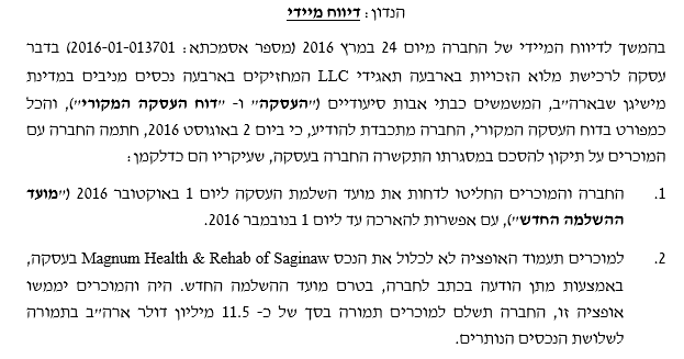 סטרוברי פילדס ריט לימטד, השלימה את העסקאות לרכישת מלוא הזכויות ב 12 תאגידי LLC המחזיקים בנכסים מניבים בארה"ב בתמורת כ- 90 מיליון דולר.