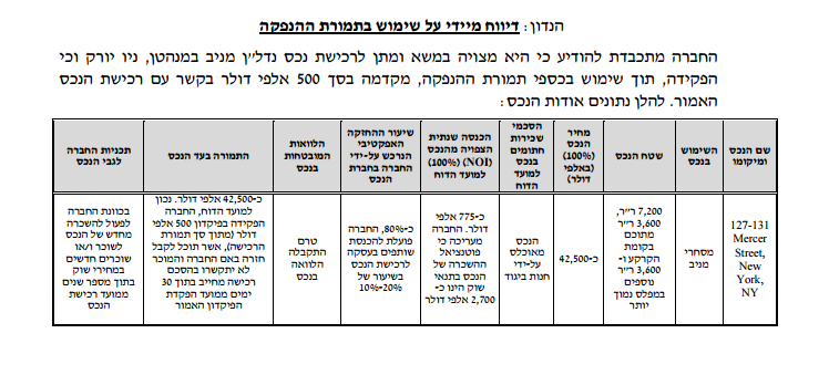 קבוצת קליין אינטרנשיונל לימיטד העבירה מקדמה של כ 500 אלפי ₪ לרכישת נכס נדל"ן מניב במנהטן, בגודל של כ 670 מ"ר, בתמורה ל-4.825 מיליון דולר.