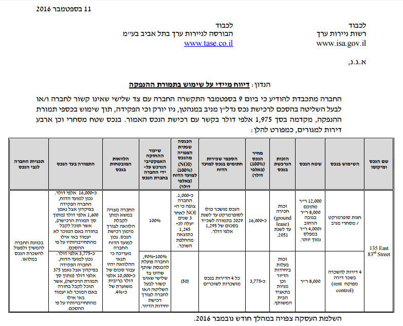 קליין אינטרנשיונל רוכשת נכס מניב במנהטן